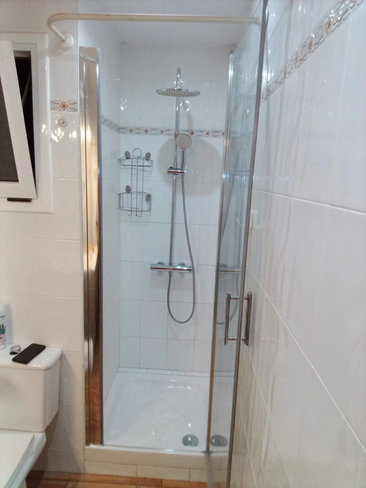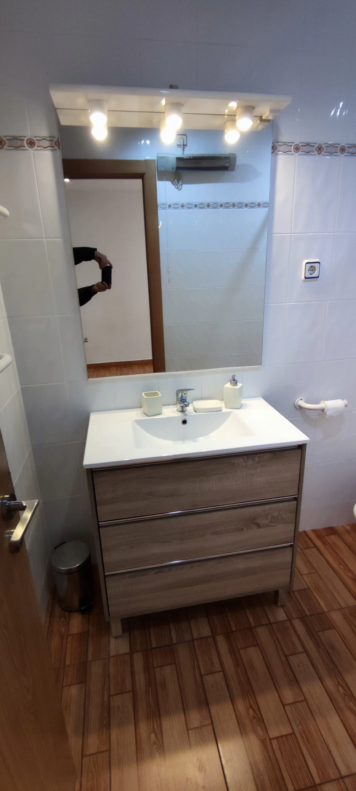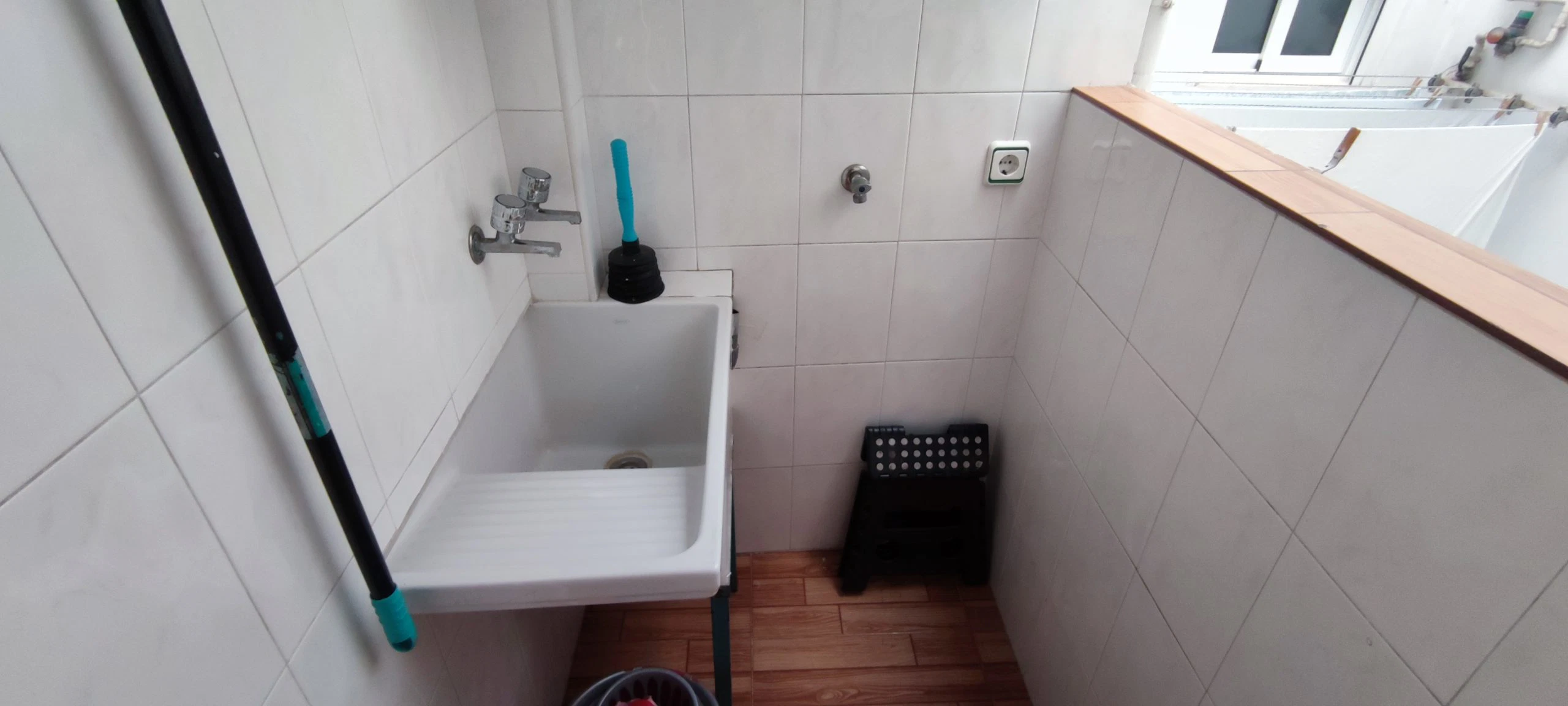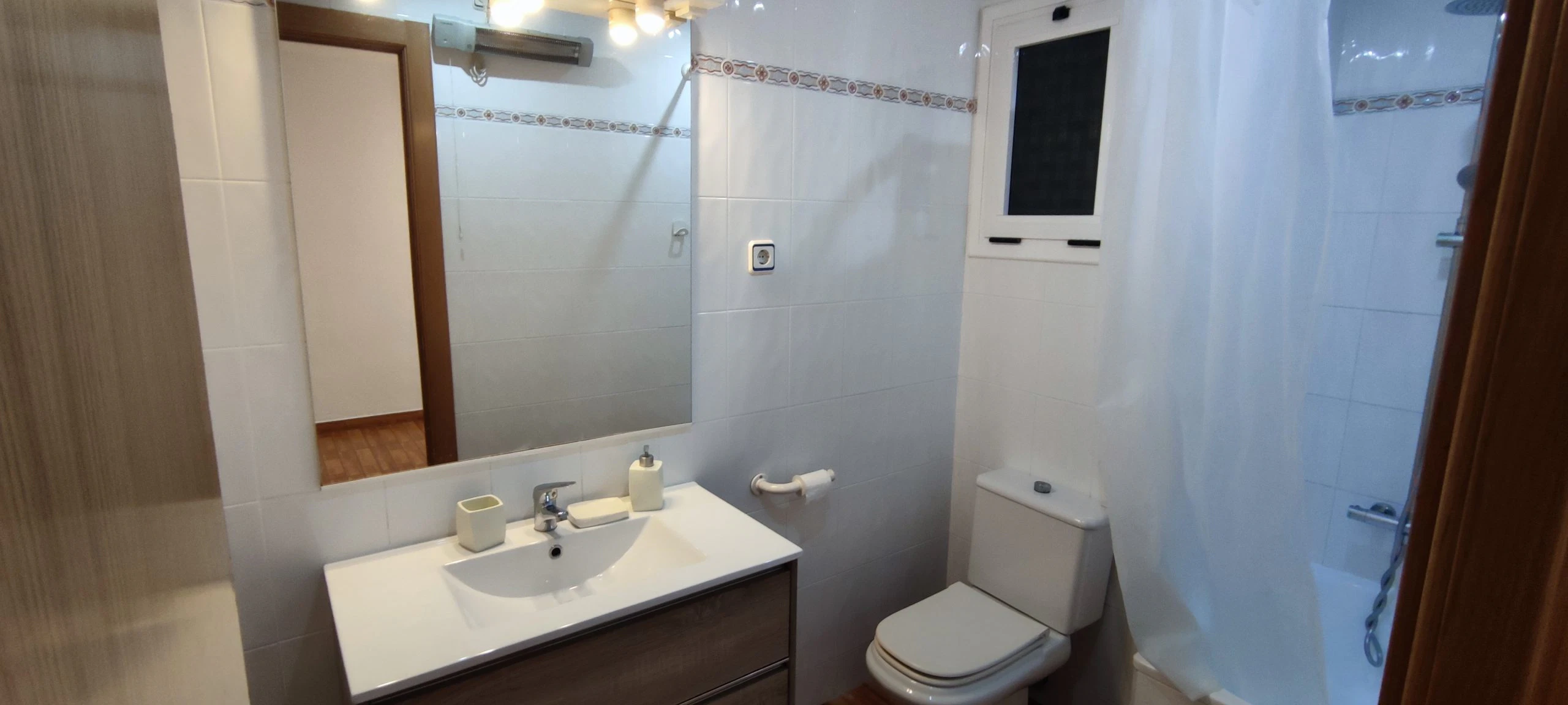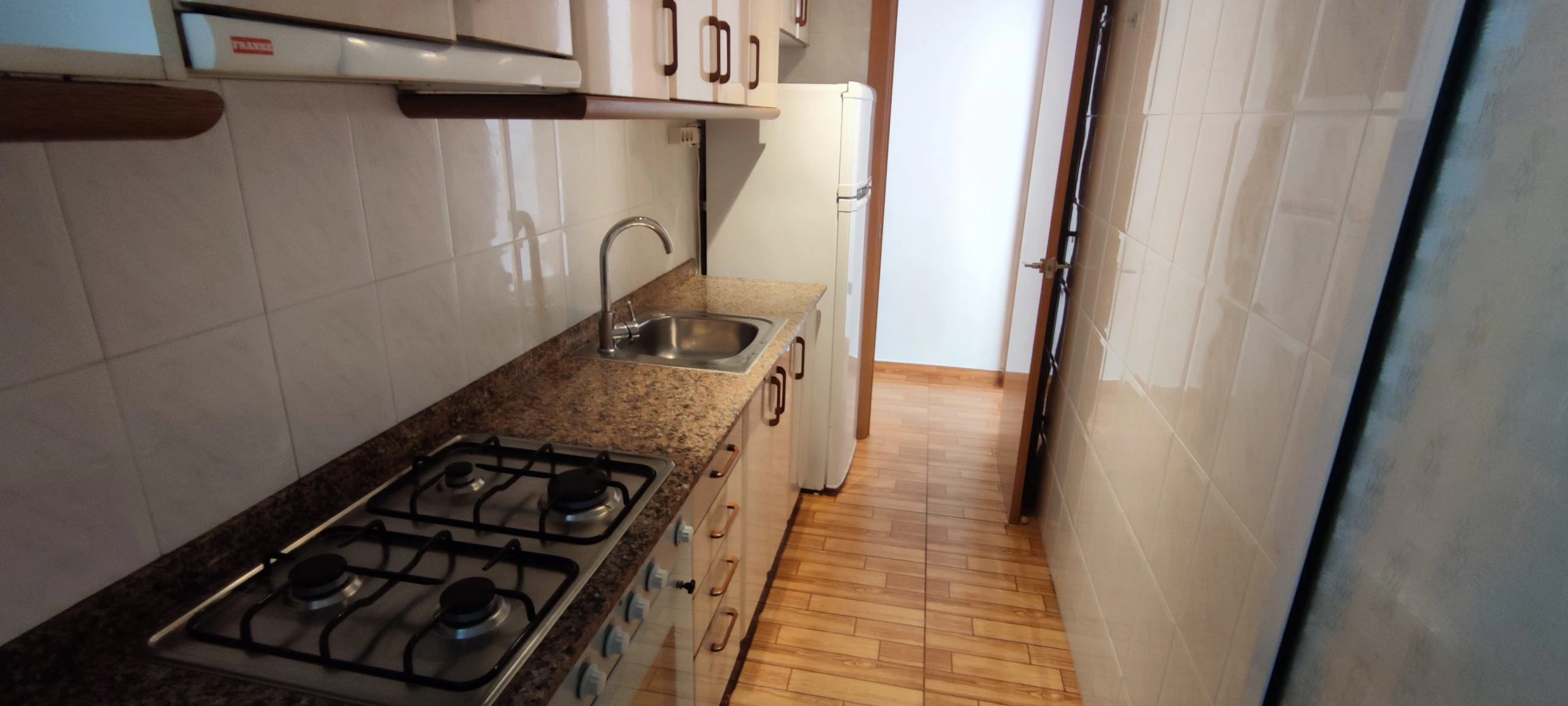 (ambos en estancias diferentes), un dormitorio doble con gran armario empotrado, baño completo con plato de ducha, cocina en buen estado y galería abierta. Está equipado con aire acondicionado con bomba de calor, carpintería de aluminio, suelos de gres, gas natural, puerta blindada.