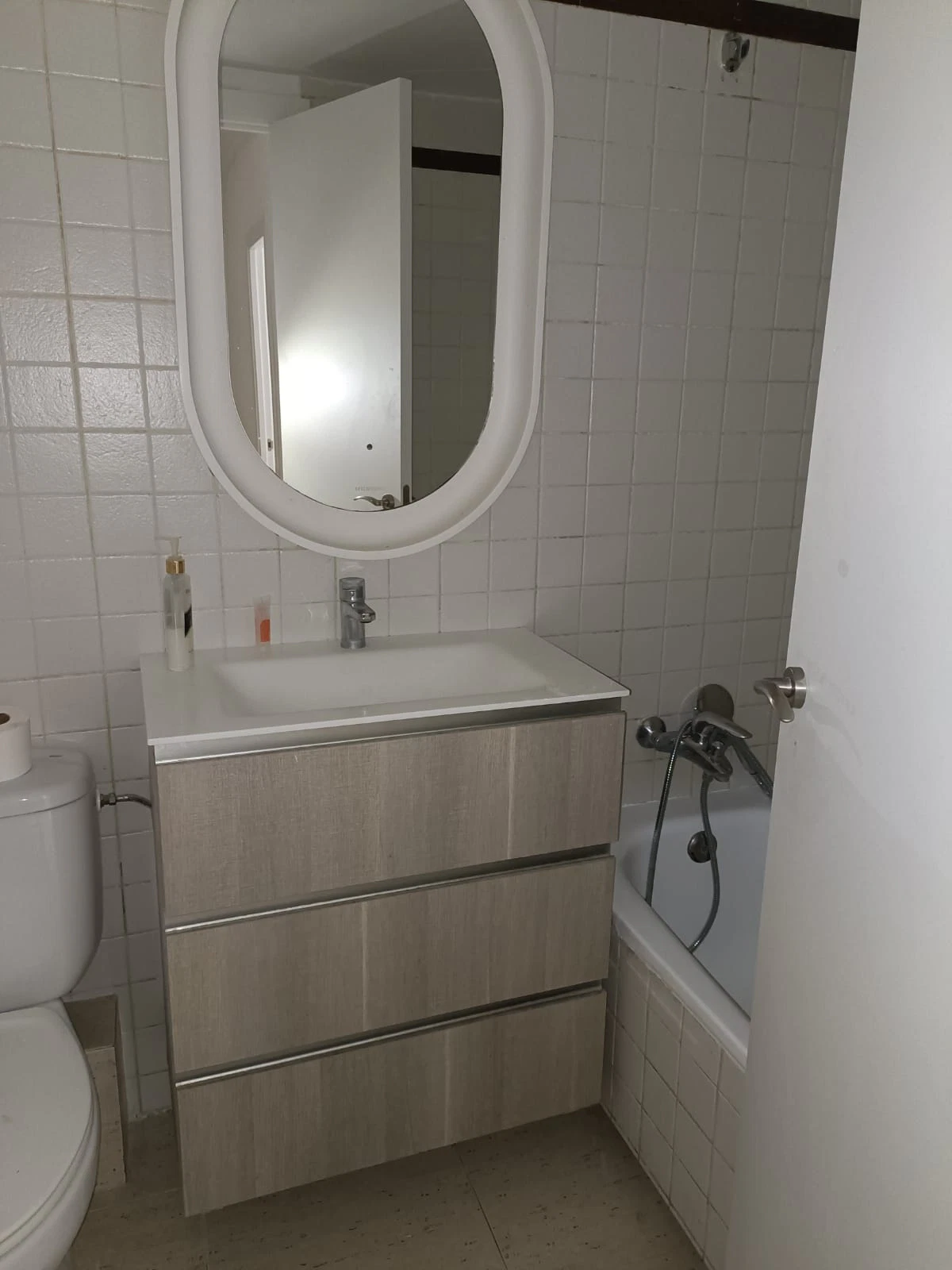 Piso en alquiler situado a tan solo 5minutos de la parada de Metro de Torrassa L1 y Metro St. Eulalia L1, muy cerca de la Plaza Española y del Cap de Torrassa. Es un entorno que cuenta con todos los servicios y comercios que pueda necesitar al alcance de la mano. Esta vivienda es interior a patio de manzana, en una segunda planta real sin ascensor, tiene una superficie de 56m2 construidos, 45m2 útiles de vivienda con balcón interior a patio de manzana y está lista recién pintada y en buen estado. Cuenta con dos dormitorios 1 doble y 1 individual con armarios empotrados, salón con cocina abierta con galería y baño de 3 piezas con bañera. Está equipada con suelos de gres, carpintería exterior de aluminio y gas natural.