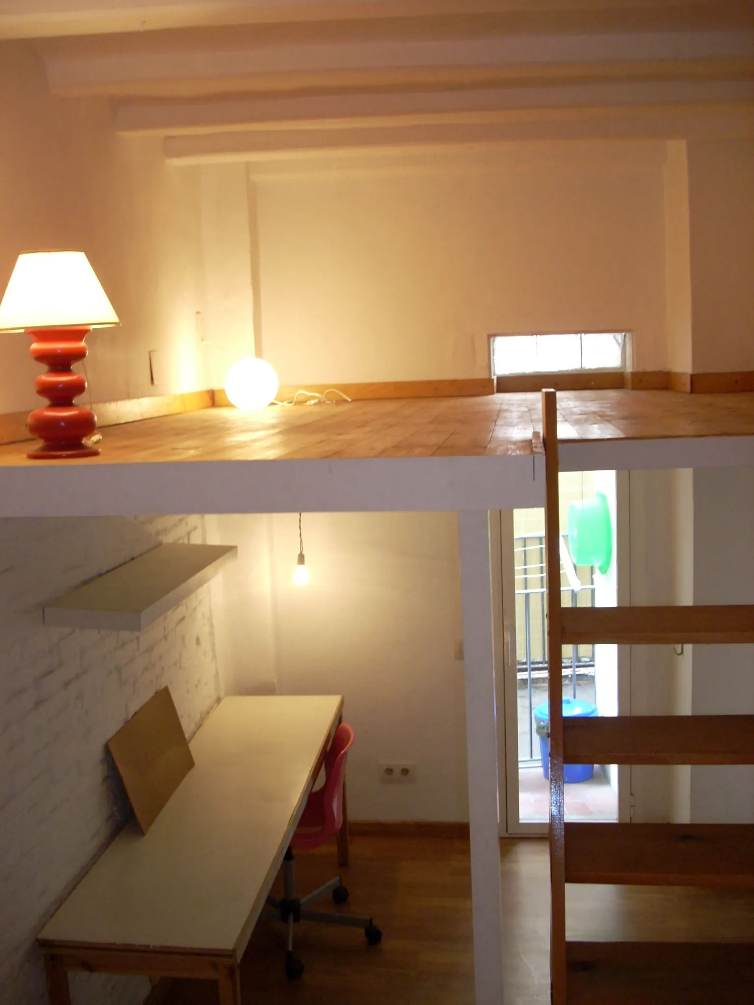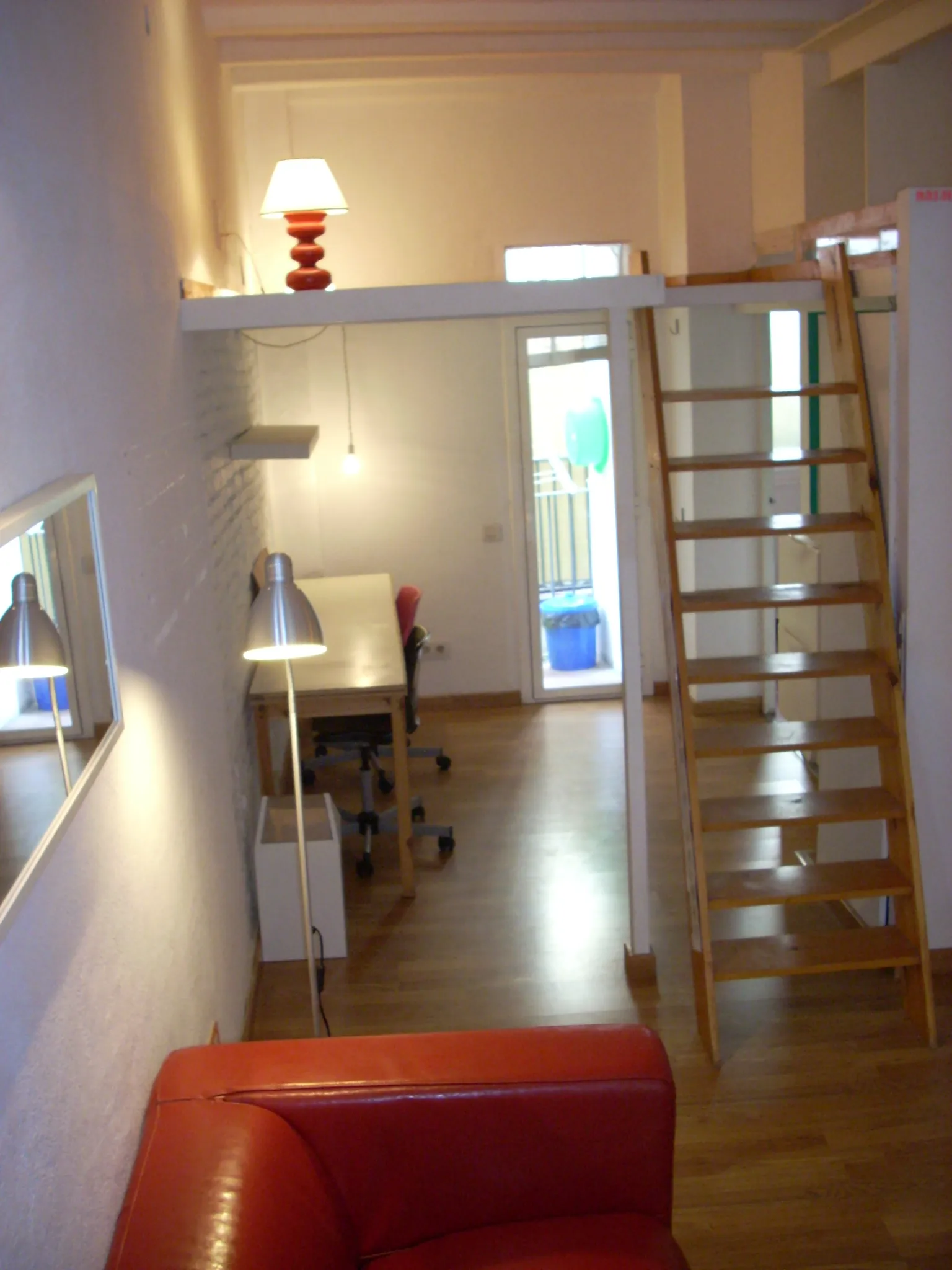 El pis consta de 40m2 construïts segons cadastre, dels quals 30m2 són útils, saló – menjador amb sortida a balcó exterior al carrer, 1 habitació situada en entresolat, cuina semi-oberta totalment equipada i un bany amb plat de dutxa, també compta amb un balcó interior a pati de poma de la finca.